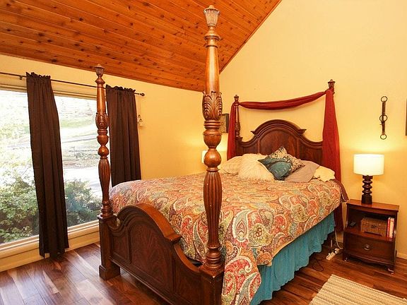 Condo which reminds you of being in a ski lodge. Peaked ceiling in living room looking up into an open loft area. 3 bedrooms, 3 bathrooms , smaller updated kitchen but nice dining area where meals can be shared.each floor has a walk out area to enjoy the outside and wild life that visits . very unique warm home. Price includes HOA fee which includes water, garbage, lawn maintenance, snow removal, community pool. Tenant pays rest of utilities. 1 small dog allowed. Tenants must comply with all HOA rules.