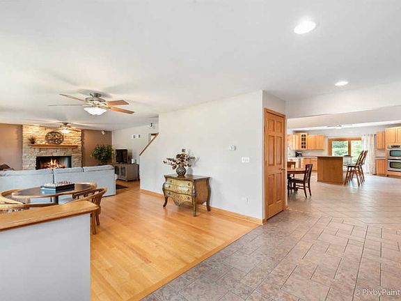 Looking for a home that has it all with a perfect location? This awesome 4 bedroom/2.1 bath was originally a ranch and in 2006 it was completely rebuilt with an additional second story. With that remodel also came additional space off the back that is now an enormous gourmet kitchen that features a large island, stainless steel appliances and corian countertops. The main level also features a family room with a fireplace and hardwood flooring, as well as a bedroom/office space; radiant flooring throughout ('17). The second level has 3 more generously sized bedrooms!! The master suite has a seating area with a fireplace, and a master bathroom with double sinks, whirlpool tub and separate shower with multiple showerheads and sprayers! Off of the kitchen there is 28X22 flex space that can be used as a workshop, yoga studio, hobby center, etc with electric & a 12 foot ceiling; radiant floor heat & AC avail to be connected. The backyard is incredible with a gazebo with wiring for a hot tub, a shed, natural gas grill and a large vegetable garden. Recent updates include: Roof/HVAC ('06), Boiler ('17), carpet ('16). 2 car garage PLUS an extra stall in the back of the house. Unfinished basement is framed and has a rough-in for a bathroom. Laundry hookup availble in either the basement or 2nd floor. Short Walk to the Bike Trail, River, Downtown Algonquin Shops & Restaurants, Splash Pad & Schools.