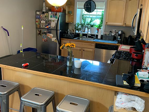 A beautiful 2 bedroom unit! A third level unit with plenty of natural light. There is a large kitchen with a breakfast bar, stone counter tops, and updated appliances. A spacious living room with a skylight leads to two large bedrooms. The unit includes off street parking, in unit laundry, and central air conditioning! 12 month lease. Water, sewage, trash removal, snow removal and grounds maintenance included in rent. Lease includes one assigned parking space. First month, security deposit, and one months broker fee due at signing of the lease.