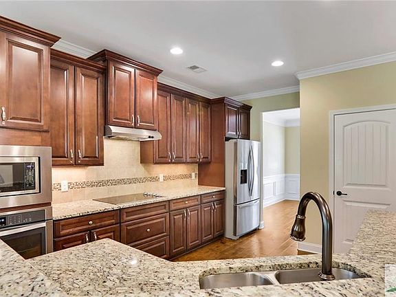 Neo-Traditional, Southern Living, Home Offers Historical Styling and Upscale Design Elements Throughout! First Floor is On Point With Elegant Moldings, Hand-Scraped Hardwood Flooring, Formal DR/GR w FP/Kitchen w Custom Cabs + Backsplash + Island w Bkfst Bar + Granite and Upgraded Backsplash, Awesome SS Appliances Include Wall Oven w Built-In MW and Sep. Cook Top..Breakfast Room Leads to Back Porch, Perfect for Entertaining! 1st Floor BR w Full BA-Excellent Layout for Multi Generational Living or Home Office! Second Floor Boasts a Grand Master w Beautiful Bath that Presents 2 Vanities, Soaking Tub, Tile Shower + Toilet Closet..Secondary Bed Rooms are Spacious and Share a Full BA w Granite Counter + Tub/Shower w Tile Surround.. Expansive Bonus (5th BR) as Well..Out Door Living Includes 3 Car Garage and a Lovely Back Porch Overlooking Woodlands..Gated Community w Pool, Clubhouse, Fitness Facility, Tennis Court & Social Activities..Minutes to Restaurants, Shopping, I-95 and I-16..