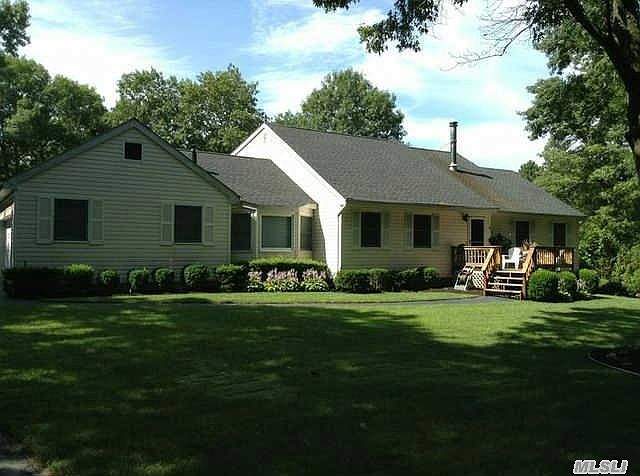 "Secluded" Home surrounded by woods on a just over an acre of property. Located within 10-20 minutes of the Fire Island ferries and local beaches. Bright Southern exposure , Large In-Ground pool surrounded by brick decking, organic garden and a large trex deck. All rooms spacious, luxurious Master Suite on main floor with wet bar - easily converted to living space for ext. family. Large shed, 2 car garage, full basement and tons of storage space. Granite and stainless steel in Kitchen, includes all appliances including New front loaded washer and dryer.