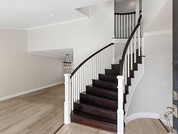 On the hunt for a peaceful retreat where you can enjoy idyllic indoor-outdoor living? Look no further than this spectacular Irvine rental set on a 5,400-sq cul-de-sac lot! This delightful abode features 4 bedrooms, 3.5 baths, and multiple gathering areas. Inside, you'll find a freshly painted 2,427-sq ft interior accentuated by detailed molding, chic lighting, and a fusion of luxury vinyl plank and dark hardwood flooring. Plantation-shuttered windows and a 5-panel glass slider usher in natural light while connecting seamlessly to the sun-kissed outdoors. Towering palms add seclusion as you relax in the PebbleTec pool and spa. Treat yourself to the kitchen's stainless steel appliances, double ovens, and exquisite quartz countertops. All bedrooms are on the upper level, including the primary and secondary suites. Additionally, there's an attached 2-car garage with an EV charging station, built in cabinets, and epoxy flooring. It's fantastic location is in the highly acclaimed Irvine School District near Northwood High School. Plus, shopping, parks, and freeways are easily accessible. Come take a tour while it's still available!