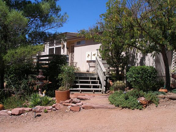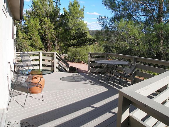 ARTIST RETREAT first time on the market! A beautiful stately home on a .47 acre lot perched on a hill, at the end of a cul-de-sac, nestled in the Sedona Red Rocks and bordering Coconino National Forest. This home features 2 large master suites each with bath and a delightful light-filled bonus room ideal for art studio, hobby room, office or potential 3rd bedroom. The kitchen has granite counter tops and all new maple cabinets with a walk-in pantry and laundry room. Artistic flair is the theme throughout with plenty of windows, cathedral ceilings, ceiling fans and skylights. There is an expansive front deck and several outdoor covered and open patios for our popular AZ outdoor living. Sunset Hills is a 55 and older community in Sedona with an HOA the is only $50.00/Annually.