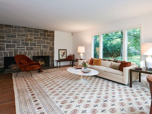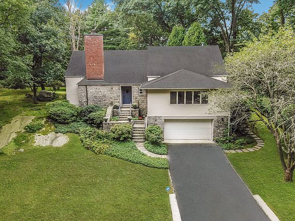 This spacious sun-drenched 5 bedrooms mid-century home is situated on a park-like .87 acre at the end of a quiet cul-de-sac. Surrounded by a nature preserve, this home offers a spectacular private setting. A bright and airy living room with a stunning stone fireplace and floor to ceiling windows overlook the expansive grounds and bluestone patio. An open main level floor plan connects the living, dining and family rooms to create a fabulous flow that is perfect for today's living. A large eat-in kitchen with new stainless steel appliances, generous size master suite, bedroom/office, hall bathroom and laundry room complete the first floor. Upstairs offers 3 ample bedrooms, a hall bathroom, and storage with cedar closet. Central AC, freshly painted interior, beautiful hardwood floors throughout the home, an abundance of closets and storage and an attached 2-car garage are just some of the wonderful features of this home. Uniquely designed for indoor and outdoor entertaining. A must see!