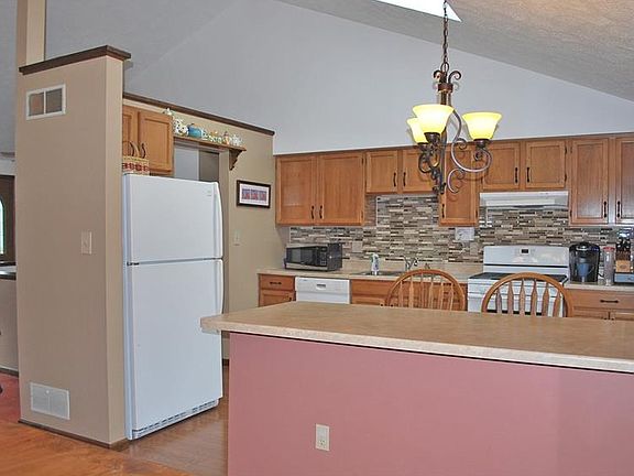 Wow! This home offers a terrific open floor plan with vaulted ceilings, floor-to-ceiling windows and fireplace! New windows and roof, updated kitchen with skylight, bar area, and sliding glass doors, double door front entry, 3 FULL baths, and more! Beautiful large, level lot with covered rear deck, patio, and paved driveway...all nicely landscaped too! Spacious master bedroom suite, lower level family room with wet-bar area and built-in wall storage with shelf--perfect for games, books, and more! Plus walk-out lower level, Omni stone walkway, extra-deep garage for storage, Whirlpool tub with cedar surround and an attractive unique stairway to lower level. Extremely well-kept, one-owner, custom built home. Dont forget to enjoy the fire pit in the back yard, plus there is large storage shed!