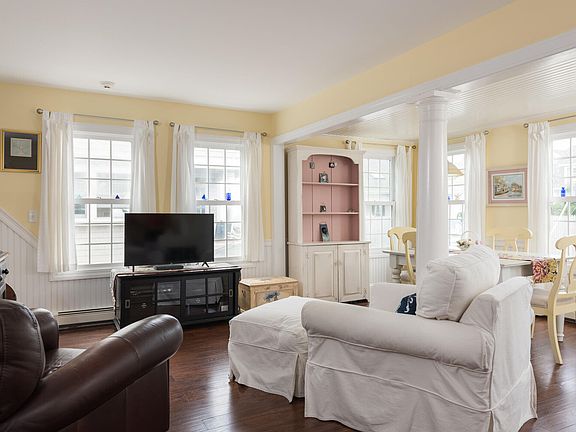 This chic, warm, and friendly decor style cottage is located steps to the fine, white sandy beaches on the warm waters of Nantucket Sound. Situated in the heart of the coastal village of Harwich Port where you can enjoy dining in one of the many fine restaurants, golfing, shopping, or listen to music on Wednesday music in the Port. Classic 1915 cottage was transformed in 2007 with a new clean contemporary coastal features that both entice and excite the senses of the cape cod lifestyle. The first floor is sunny and bright, with a spacious open living space and a front screen porch. The living room has a fireplace with a gas stove insert and boasts ocean views. The dining area and the kitchen are off the living room with granite counters, a breakfast bar, and access to the private patio to enjoy dining al fresco and the outdoor shower: First-floor laundry. The primary bedroom with water views on the second level, 2 guests bedrooms a sitting room overlooking the water. This home would make an excellent vacation rental property or a private residence year-round, or your summer retreat at the beach