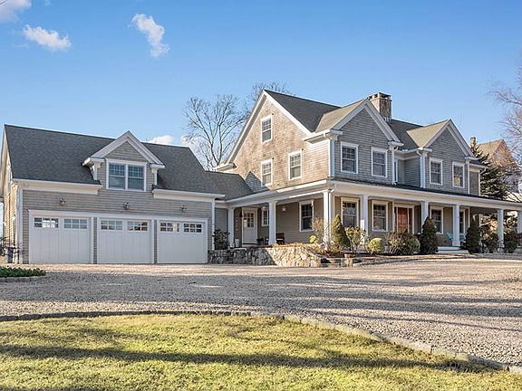 Prepare to be wowed as you enter the circular drive to this custom built, Nantucket style colonial, perfectly sited on 3/4 of an acre, within walking distance to Bayley Beach, the shops and restaurants of Rowayton Village, Pinkney Park, the Community Center, and train. Beautifully crafted, and meticulously executed, this spacious home is perfect for entertaining, or just enjoying the comforts of home. The impeccable sunny interior features gleaming hardwood floors, 9 ft. ceilings on main level, a chef's kitchen with professional grade appliances, granite tops, large center island, custom cherry wood cabinetry and a large dining area that is open to the large family room with its floor to ceiling stone fireplace and custom built-ins, lavish baths, a romantic master bedroom suite with spa-like bath and French doors out to a balcony, a walk-up third level, a full finished lower level with full bath, crown molding throughout. Additionally, there is a 3 car garage, and a gorgeous 3 room apartment above garage with a private entrance. The meticulously landscaped grounds boast a very large patio and wrap around porches for entertaining even if it rains. This is a very rare find in Rowayton. Come home and stay!