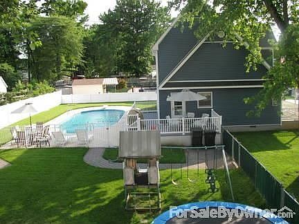 Recently renovated in 2006. Spacious home with open floor plan, 4 bedrooms, 3 baths, gas fireplace in l/r, large eat in kitchen with sliders out to deck to large yard with 18x38 built in pool with Jereth safety fence. Anderson tilt out windows, hardwood floors throughout, carpeting in two beds, ceramic tile baths. Master bedroom is adjoined by sitting room which can be used as a nursery or office. Walk-in closet and masterbath with 6ft Jacuzzi tub and his/her sinks. Cathedral ceilings lead up to loft area. Second bedroom has own bath with custom shower, sink & toilet. Recess lightng throughout home, plenty of closet space, central vac system, ceiling fans throughout, 65 gallon water heater, washer/dryer room, alarm system, radio intercom system throughout home, 2 zoned a/c-heat, plus full floored attic. 12x15 Custom made large shed with electricity, underground sprinkler system, 4 car concrete driveway, new solid vinyl fence. concrete crawl space and sump pump. TAXES ARE $8,500.00 MLS # 20928358