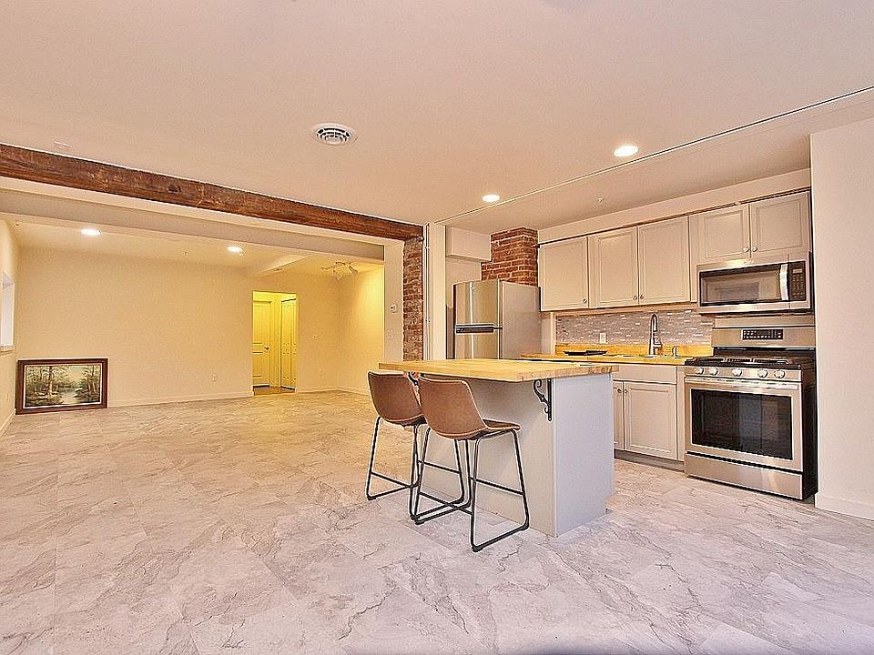 Luxury apartment rental with views of the Rondout, in Kingston NY. This is a completely renovated bottom floor unit with preserved characteristics. Centrally located within walking distance to many popular restaurants adds ultimate convenience. The unit is approximately 1,000 sq ft graced with large open windows, exposed brick, high ceilings and a patio area. The space is completed with a large Kitchen with all new stainless-steel appliances and a butcher block countertop, a large bedroom, washer/dryer hookup and a large full bath. The owner provides water, sewer, trash removal, snow removal. Tenant responsible for all other utilities. Owner will consider pets and long-term lease upon application submission. No smoking. After paper application is submitted tenant is responsible for a non-refundable $20 application fee.