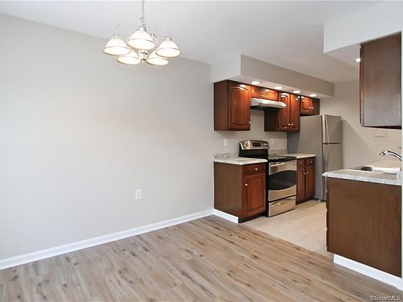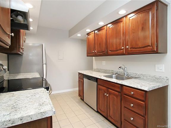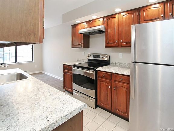 Light-filled first floor upgraded unit in desirable Rolling Ridge Complex in convenient West Rocks neighborhood, located between the Merritt Parkway and I-95 and close proximity to Metro North stations. In-unit washer and dryer. Heat and hot water are included in HOA fee. Nestled in a park-like setting; Spectacular private pool, pond setting, paddle tennis, dog park, and storage bin.