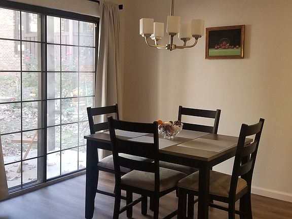 Spacious Condo with 2 bedrooms, kitchen, dining room - and living room that opens into a private garden courtyard in a much sought after condo complex. This condo was totally renovated from ceiling to floor with new flooring, modern upgrades like USB ports in every room & smart-compatible AC, ceiling fans, brand new stainless steel appliances and more! The open floor plan features ample oversized windows with lots of natural sunlight! The efficiently designed galley kitchen offers abundant storage and counter space, while the generous Living Room and Dining Area are just steps away from a beautiful ground level garden patio. New Stainless Steel Appliances include a stove with overhead microwave, dishwasher, and a WASHER/DRYER in the unit for added convenience! The complex itself is well manicured and offers a park-like setting with walking paths, courtyards, benches and a pond with fountains. In the summer, enjoy the pool or paddle tennis court. You will also enjoy the convenient location with shops (including drugstores and fresh produce) within walking distance and two train stations that are just a few minutes' drive away--and NYC is an easy commute. Standard deposit (2 month's rent) required. No smoking. Will consider 1 small pet , to be discussed. **RENT INCLUDES HEAT AND HOT WATER** Heat and hot water are INCLUDED