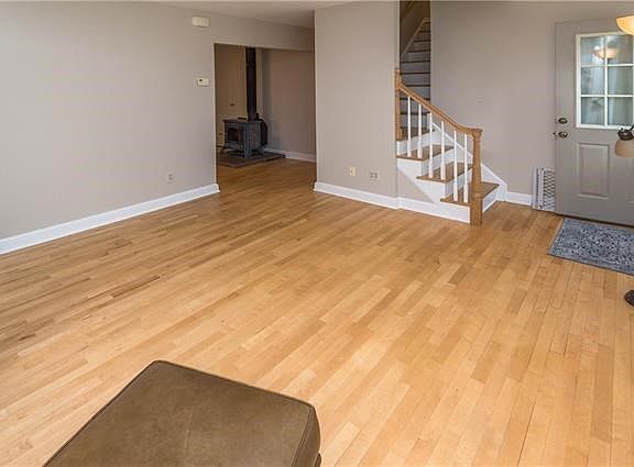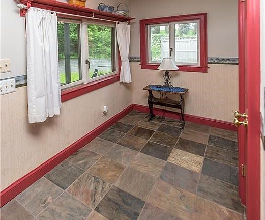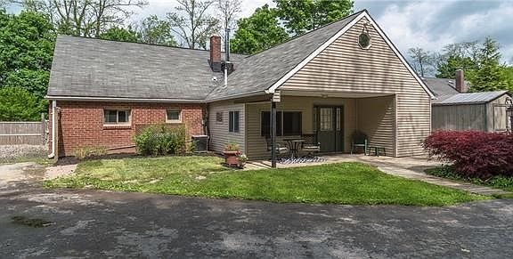 Total interior renovations and the creative use of space turned this 1950 s Cape-style home into a bright, airy and completely delightful respite. Perfect as a starter home or weekend getaway, the two-bedroom, 1.5 bath is surprisingly spacious. A large living room, country-style dining room with pantry, brand new kitchen with quartz counter-tops, beautiful cabinets, and a wood-burning stove, plus two large bedrooms, bath with a whirlpool tub, powder room and laundry area make up the main floor. Upstairs, the attic has been dormered, insulated, and finished to provide two bonus rooms and a hallway, as well as a large unfinished area great for storage. In addition, the areas under the eaves along the entire length of the house, are accessible through strategically placed doors. Hardwood floors, beautiful molding, central air, detached garage, white picket fence, and a lovely level yard with a child s playhouse complete the cottage feel of this period home.