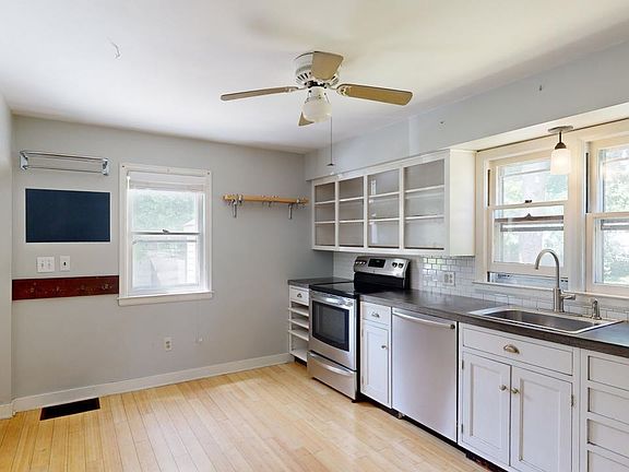 Don't miss this adorable 3 bedroom Cape in popular quiet neighborhood of Burlington's New North End. Updated eat-in kitchen with stainless steel appliances, stylish concrete counters and open upper cabinets. Hardwood floors throughout the home, both upstairs and downstairs. Bright spacious living room with curved doorway entry. The first floor also features 2 bedrooms and an remodeled full bathroom with tile floors and new vanity. Upstairs you'll find one large private bedroom. The basement offers laundry including washer & dryer, workshop space and plenty of storage. This home has a private fenced flat backyard with both shade and sun! Detached 1-car garage. City living yet close to Lake Champlain, Burlington Bike Path, Star Farm Park, Leddy Park, Ethan Allen park & trails and Derway Island Nature Trail for outdoor fun. Great location just minutes to Schools, Bus line, Bike Path and Ethan Allen Shopping Center with a grocery store, brewery, and restaurants plus all that Downtown Burlington has to offer.