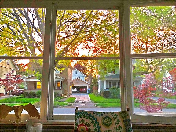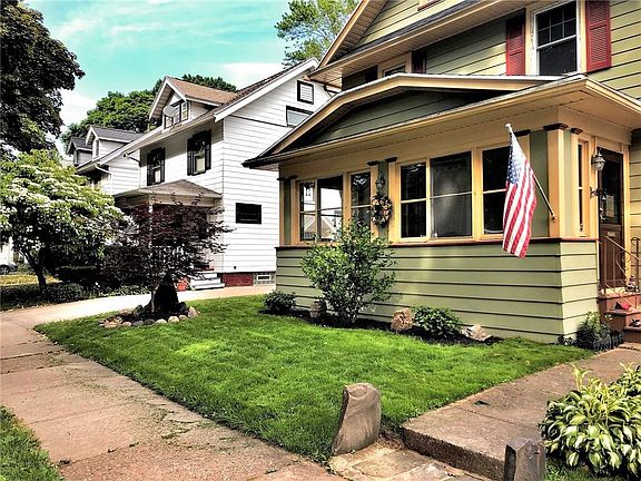 Tastefully RENOVATED 3 BR, 2 BA home located in the popular NORTH WINTON VILLAGE area. Preserving the exquisite original GUMWOOD trim, doors & HARDWOOD floors, recent renovations include TOTAL KITCHEN REMODEL, November 2020--new MAPLE cabinetry, GRANITE countertops, BREAKFAST BAR, SS appliances, UNDER-CABINET lighting, DRY BAR w/BEVERAGE FRIDGE, new LIGHTING, LAMINATE FLOORING**NEW ROOF, GUTTERS & SKYLIGHT, October 2021**FURNACE & AC, 2014**NEW ENTRY DOORS & SCREEN DOORS**NEW SLIDER DOOR in dining room leads to COMPOSITE deck installed 2016 & overlooks COZY BACKYARD with CUSTOM LANDSCAPED PATIO designed by artist homeowners w/Finger Lakes decorative rock, flagstone, stamped concrete**CUSTOM-BUILT WATERFALL**3-SEASON ENCLOSED FRONT PORCH**NEW GARAGE ROOF & GUTTERS 2016**UPDATED FULL BATH w/DUAL SINKS, GRANITE COUNTERTOP, TILED SHOWER**2ND FULL BATH in lower level**Fully FINISHED 3rd Flr Attic adds 325 SF LIVING SPACE--could be office, studio or 4TH BEDROOM**WALK to restaurants, art galleries, historic Browncroft Neighborhood**Minutes to museums, parks & Rochester Public Market**Delayed showings begin Thursday, April 14, at 12 PM. Offers to be reviewed Tuesday, April 19, at 6 PM.