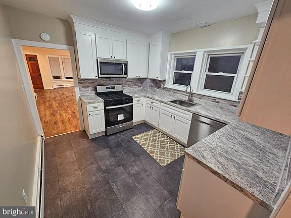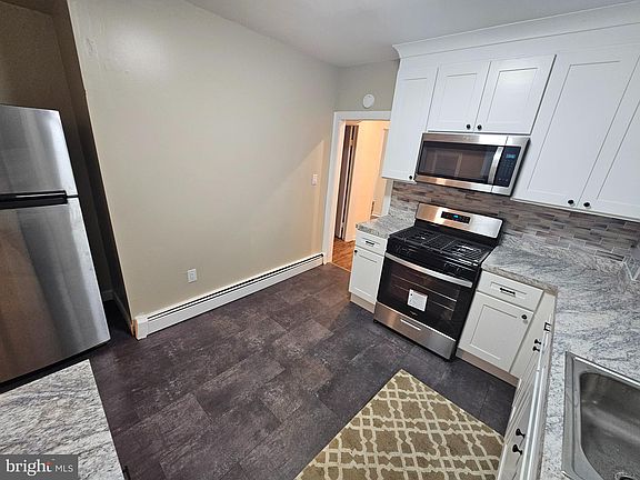 Nicely renovated 3 bedroom, 1 bathroom house in the Broad Street Park neighborhood of Hamilton, NJ. Newly renovated kitchen and bathroom. New flooring, tastefully painted. Two bedrooms on the first floor. The large primary bedroom. on the second floor has two walk-in closets. Breakfast nook next to the kitchen. Refinished, clean basement with natural light and laundry hookups. Common driveway to the right of the house. Oversized shed in backyard. Floorplans with measurements and survey included in the documents section of the listing.