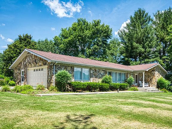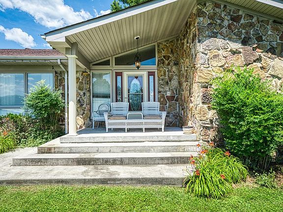Attractive, well kept, unique stone ranch sitting pretty atop a breezy hill with beautiful VIEWS FOR MILES! 3 bedrooms and 3 full baths, nice upgrades like hardwood floors, kitchen updates (counter tops, tile backsplash), pex plumbing, multiple living spaces (living room and family room with gas log fireplace), office, large laundry & loads of cabinet space. Exterior landscaping is super nice with covered back patio and front porch. Super handy outbuilding to store all of your lawn tools & gadgets. Dale Hollow Lake super close-just 20 minutes to several marinas. Cumberland River just minutes away & Celina town square can be seen from the front porch.