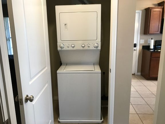 - Appliances: Refrigerator, Dishwasher, Garbage Disposal, Microwave, Stack Washer/Dryer, Stove/Range