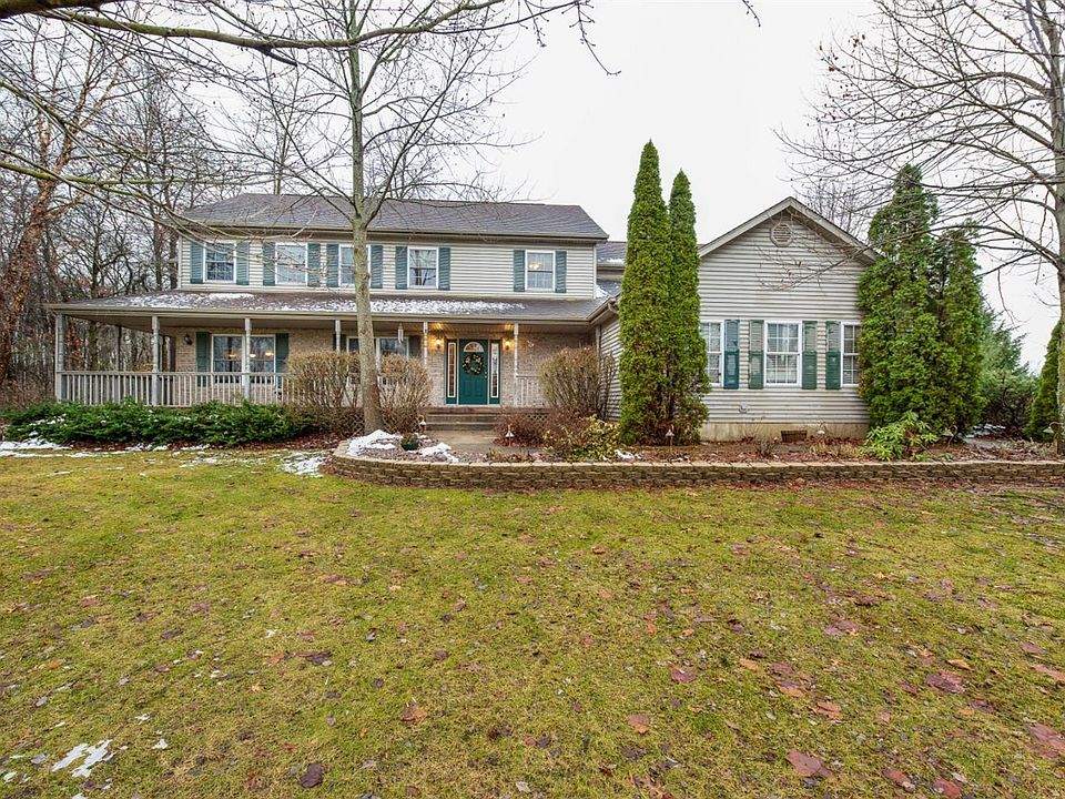 This Spacious unique 2 Story home has 3300 SF plus a full basement. Nestled on 1.3 lovely acres on a cul-de-sac. Private backyard features a wooded area along the full southern edge & includes a 40x20 fully automated inground pool! Covered front porch welcomes you to an open concept main level. Massive kitchen W beautiful new laminate wood flooring, Lg/kitchen island, new backsplash, all appliances, including dbl oven. Adjoining the Kitchen is a huge family room w vaulted ceilings w 2 Lg transient windows to provide ample natural lighting. Large LR, DR & a fantastic mudroom with a Lg bench, coat rack & shoe storage completes the main level. For your convenience, use one of the 2 staircases to access your expansive Master en suite & 3 additional BR plus an office w Lg closet, laundry room complete w laundry tub. This dream home also has an insulated 3 car garage with workbenches, cabinets, counter & sink. The newly repaved & seal coated driveway & extension allows for plenty of parking
