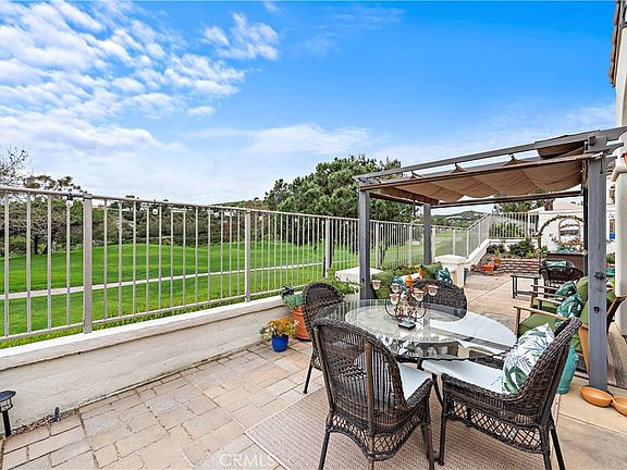 Sweeping views of lush fairways and rolling hills complement the upscale ambiance of this spacious single-level home at Talega’s Carmel neighborhood in San Clemente. The recently upgraded residence shares only one wall with its neighbor and is located close to a resort-style pool and spa. Approximately 2,050 square feet, the three-bedroom, two-bath design is delightfully bright and open, with main living areas flowing to a view-enriched backyard complete with custom stone patios, an awning, and room for a firepit and outdoor living. The living room displays a custom built-in entertainment center and a fireplace, and the dining room generously welcomes memorable gatherings. Kitchen upgrades include all new Viking stainless-steel appliances. Other features include a custom tile backsplash, granite counters, six-burner gas stove, and built-in wine cabinetry. New hardwood floors grace most areas, with designer tile and stone in select living areas. Recessed lighting, ceiling fans, plantation shutters, a spacious central hall and an attached two-car garage are also included. A French door to a private patio invites natural light into the primary suite, where a walk-in closet, dual sinks, stone counters and an oversized shower ensure comfort. Located in the heart of Talega, Carmel makes it easy to enjoy the community’s 18-hole championship golf course, a swim center, beautiful parks and trails, and an array of shopping and dining destinations.