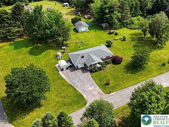 Welcome to this charming 3-bedroom ranch home located in the highly desirable Palmerton School District. This beautiful property features a fully finished basement with a cozy wood stove, perfect for those chilly evenings. The home boasts a modern kitchen with nice appliances, a newly renovated bathroom, and natural hardwood floors beneath the carpeting and Pergo flooring. Additional features include a new roof, a new water heater, and central air conditioning for your comfort. The property also includes a 1-car attached garage, 1 detached garage, and 1 shed, offering ample storage space. There is an electric fence for dogs. Situated on a spacious 1-acre lot with underground utilities, you’ll enjoy privacy and tranquility while still being close to local amenities. Don’t miss out on this fantastic opportunity!