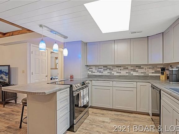 ADORABLE & AFFORDABLE! Here is your chance to own a REALLY NICE UPDATED lake home on a flat lot with wonderful views & everything you need to start living the dream! New Kitchen, New Flooring throughout, most windows are new, 2 new patio doors, updated bath vanities, sinks and fixtures. Roof and hot water heater are less 3 years old. Very few steps from parking takes you to the main level with living, dining, kitchen, bedroom and full bath plus laundry. Master suite with huge closet and storage along with a guest bedroom and 1/2 bath is on the second level. Owners loved this location at the 2mm of the Big Niangua. Easy access only a few min off Hwy 5 & 7 and close to numerous popular lakefront restaurants. Quiet community with no rentals allowed. Price includes dock, furnishings plus 5k credit for exterior paint if not completed prior to closing.