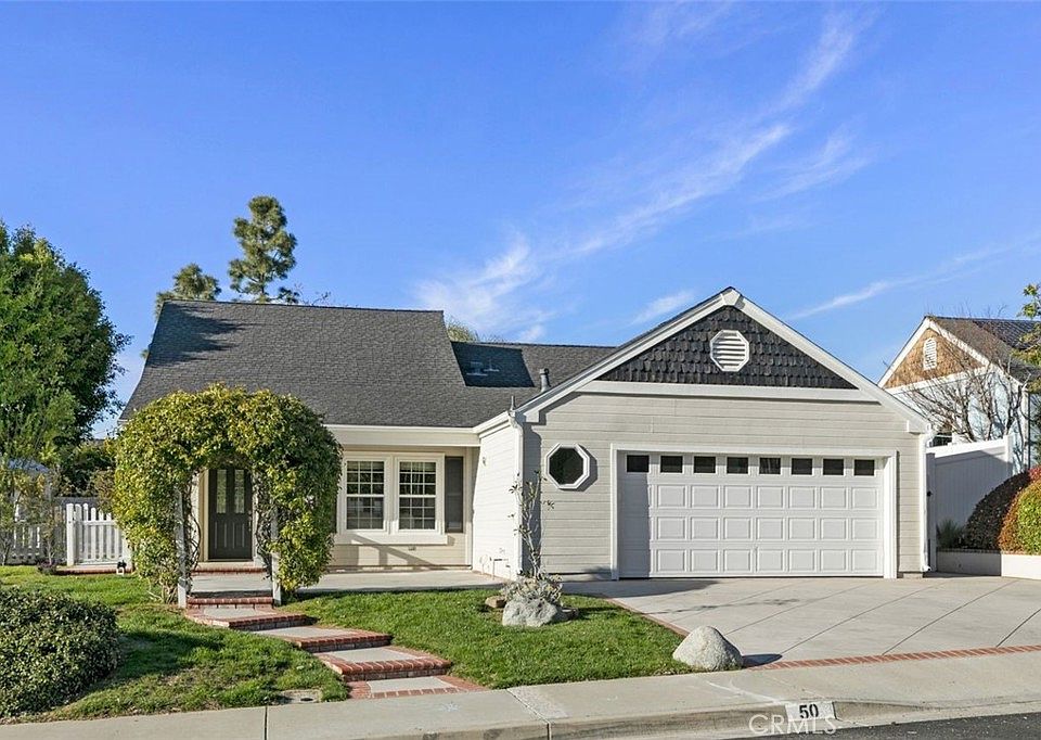 Situated in a charming Cape Cod community in beautiful Laguna Niguel, this upgraded SINGLE LEVEL home offers the ideal private corner lot location on a small serene single loaded cul de sac. Freshly painted inside & out, this picturesque 3 bedroom, 2 bath home features soaring ceilings, decorative woodwork, engineered hardwood floors, cozy fireplace and an abundance of natural light. Its remodeled open floorplan flows from the living room right into the highly upgraded kitchen to the inviting dining or family room (many ways to configure!). Gourmet chef’s kitchen comprises of an oversized island with breakfast bar, designer pendant lighting, expansive storage, quartz counter tops and stainless steel appliances, including superior Thermador range. The primary bedroom suite offers vaulted ceilings, woodwork wall and sliding doors to the rear yard with private hot tub. The lushly landscaped wrap around outdoor space is perfect for entertaining featuring a gazebo and delightful seating area under mature trees. The side/back yards offer a covered patio, fruit trees and a large, finished shed and extra small garage which is perfect for a motorcycle/e-bikes or further storage. The 2 car garage is oversized with additional capacity for tidying away. Home has been repiped with Pex. Close to hiking/biking trails, great beaches, Dana Point Harbor, entertainment, shopping, restaurants and award winning schools.