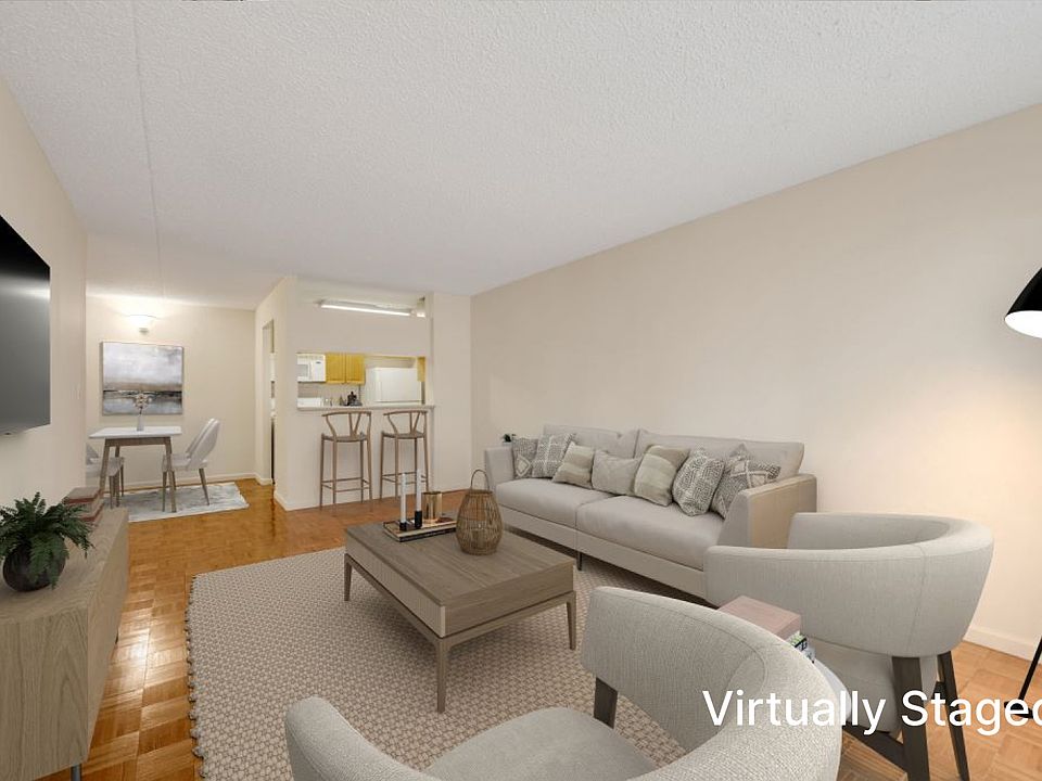 This 2bedroom/2bathroom looks South with tree top views. The primary bedroom has a large walk-in closet and an ensuite bathroom. The kitchen with tons of cabinetry to the ceiling includes full-size appliances. The kitchen has a pass thru acts as a breakfast bar as well. Both bathrooms are full size with vanity and 3 mirrored panel medicine cabinet. South Cove Plaza is a luxury mid-rise building located in Battery Park City, close to all bus and train transportation. Situated right on the Hudson River it has access to the running path and lovely waterfront views. The building amenities include free gym, 24-hr concierge, laundry on each floor and free storage and bike room. There is public parking accessible from the building. Full-service building staff with Resident Manager on site. Equal Housing Opportunity. All forms of legal income accepted DISCLAIMER Please be advised that South Cove Plaza, Landlord, and its affiliates, utilize exclusive brokers/agents in connection with all rentals of real property. Prospective renters, their brokers and/or agents understand that neither the landlord nor landlord's agents will charge or collect fees to a prospective renter in connection with this property except for administrative and/or application fees as permitted by law. Nor will landlord or Landlord's Agent assume responsibility for any brokerage fees incurred by a prospective renter in connection with this property. Any broker/agent who contacts management in connection with this listing, who is not the exclusive broker is not the landlord's broker/agent and will not be paid by landlord. This listing is being advertised to prospective renters. This listing may not be re-published without the express written consent of the landlord