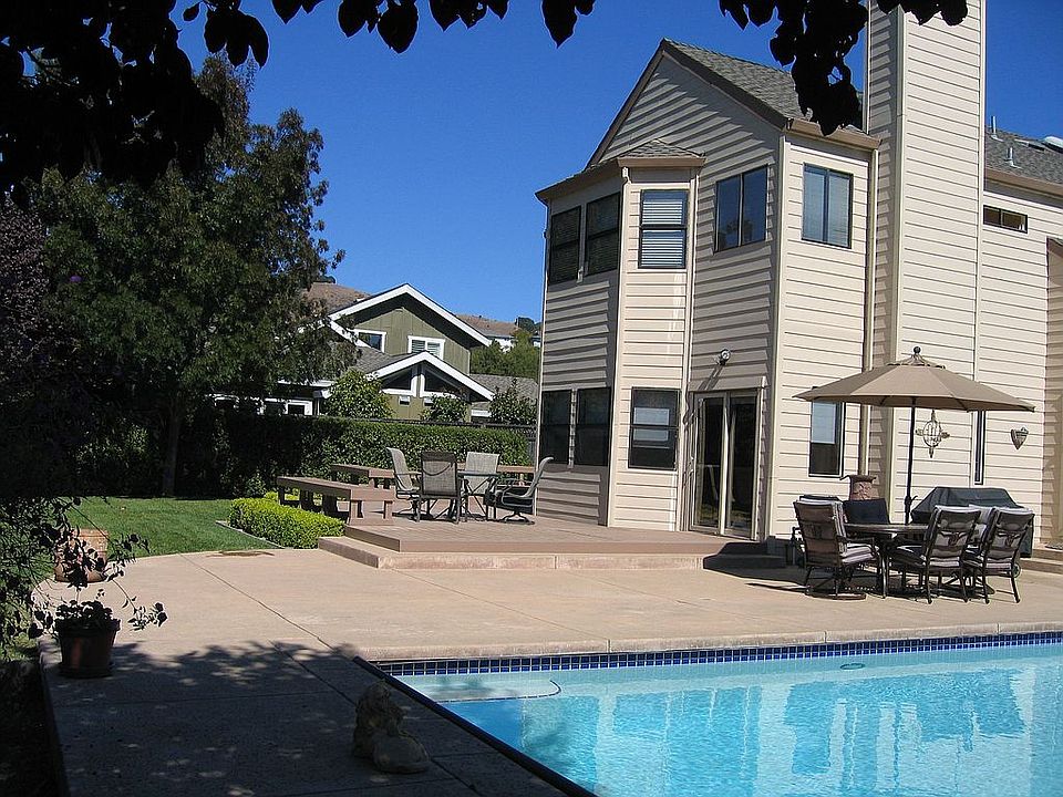 Main level opens up to Trex decking, beautiful gardens and all day sun. Uniquely tall, arched windows bring in sophistication and loads of natural light and wonderful energy. Upscale solar pool with copper tubes. Views of Mt. Tam. Many upgrades and amenities. 3 Car Garage. Glenwood elementary School. Featured by The San Francisco Chronicle.