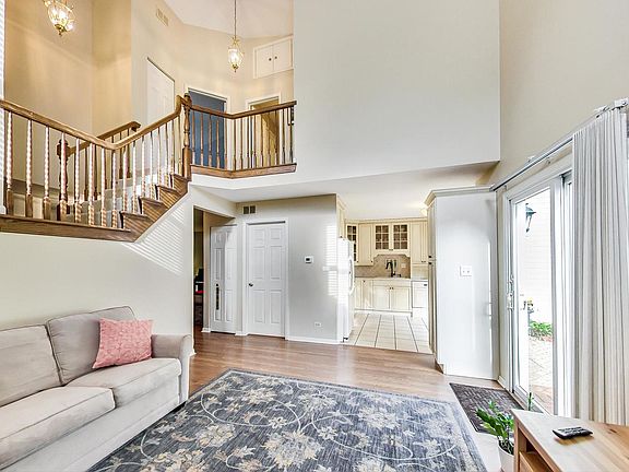 Soaring vaulted Family Room ceiling opens this Duplex to natural light. Living Room, updated Kitchen large enough to accommodate a table in the Bay Window, Family Room with a Fireplace and sliding glass doors lead to the brick patio, beautiful gardens, fenced in yard and a terrific gardening shed. Powder Room and Laundry Room complete the first floor. Master Bedroom also has a vaulted ceiling, walk-in-closet and shares an updated Bathroom with the 2nd bedroom. Located in the Vernon Hills School District, this wonderful sought-after Cambridge West Neighborhood will welcome you. 1260 SQUARE FEET. No Association Fees ! SUPER brand Home Warranty.