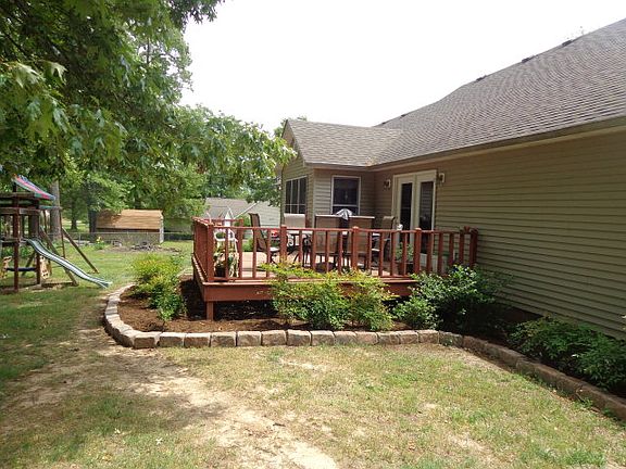One Level home in excellent neighborhood.Spacious Living Room w/ gas log fireplace, vaulted ceiling & ceiling fan.Kitchen has tile back splash, two lazy Susan cabinets, new Bosch dishwasher 2013 & garbage disposal 2014.Tile in kitchen, dinette, both baths & utility room.Master Suite has 2 double closets & 1 walk-in closet, whirlpool tub, standup shower & double vanity sinks.Hardwood in Dining Rm. New Carpet in Bedrooms, Living rm 3/2015. Utility room has cabinet space & nice closet. Large Deck off back of home. Fenced back yard w/ two sections. CHA new in 2012. Detached Storage Building stays. New insulated garage door 2011. Great floor plan and with spacious rooms and spacious yard