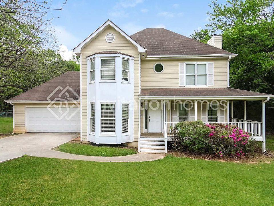 Home Features and Amenities: Air Conditioning, Bay Windows, Covered Porch, Deck, Fenced Yard, Fireplace, Garage, Long Lease Terms, Luxury Vinyl Plank, Pet Friendly, Smart Home, W/D Hookups, and professionally managed by Invitation Homes.