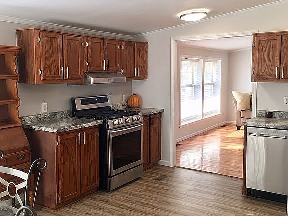 Must See Home! This Charming Manufactured Home is Located in the Oak Park Estates 55 + Adult Community. This home has been updated with Stainless - Steel Appliances in the Kitchen with new flooring and countertops. The Living Room has Hardwood Floors and New Ceiling Fan. Both Bathrooms have been updated with new flooring. The Primary Bath has a Custom Tile Walk - In - Shower and New Vanity Countertop. The Secondary Bath has a New Vanity. The Bedrooms have New Carpet and Light Fixtures. The Air Conditioner and Furnace are new. The Front Porch was updated with New Vinyl Railings. The home has a One Car Garage. The Monthly Lot Fee is $395.00 Includes: Trash & Yard Waste Pick-Up : Taxes are under $120.00 a Year.