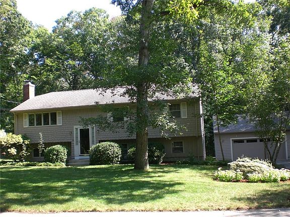 First time on the market, this one owner home has been very will cared for. This large (46 foot) raised ranch is a most welcoming family home. Situated on a very private and well treed lot this home is near the Briggs Corner section of Attleboro in a well established neighborhood. The upper level includes a spacious living room, a dining room with sliders to a deck, fully applianced, eat-in kitchen, 3 bedrooms and 1 full bath. The surprising lower level opens to a front to back family room with picture window in front, a walk out slider to the backyard and a full brick fireplace. Also included is a laundry area with louvered doors, (appliances included), a charming 1/2 bath and an office with separate rear door. This home was built with a one car garage under. An added bonus to this property is a large (26x26) 2 car detached garage built in 2011. Many updates have been done to the property. Outside improvements include roof, energy efficient windows, storm doors, deck, small privacy fence, cement patio and driveway, Interior updated include ceramic tile kitchen floor, new bath fixtures all programmable thermostats and ceiling fans.