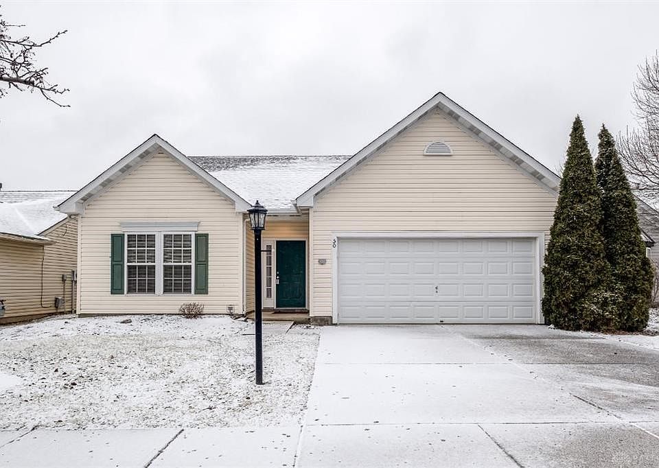 Beautiful ranch home with over 1,300 sq ft of living space in Settlers Walk. Home sits on a fully privacy fenced in lot that abuts to a green space area. You'll love the vaulted ceiling and dual skylights in the large great room. With a dining room and kitchen adjacent to the great room creating a very open floor plan that is much desired. Master bedroom has a walk in closet and master bath has a whirlpool tub. Paver patio in back. Home is located on a cul-de-sac road with very little traffic. HOA includes pools, park & tennis courts. You'll love this home in a terrific neighborhood. Seller is relocating due to family reasons. Loves this home and hates to leave it. All info and dimensions believed to be accurate. Please make your own inspections to confirm.