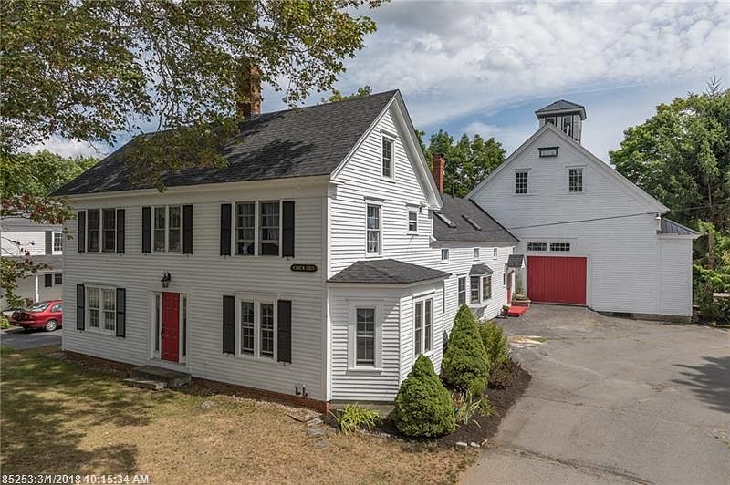 Farmhouse with a spacious eat-in granite cherry kitchen, wood floors, remodeled baths, Buderus boiler, new roof shingles, decks, a magnificent Barn with staircase to Cupola, a separate Garage, pool with deck, hot tub, and situated in Standish Village with one (1) acre of land. So much more, with public water.