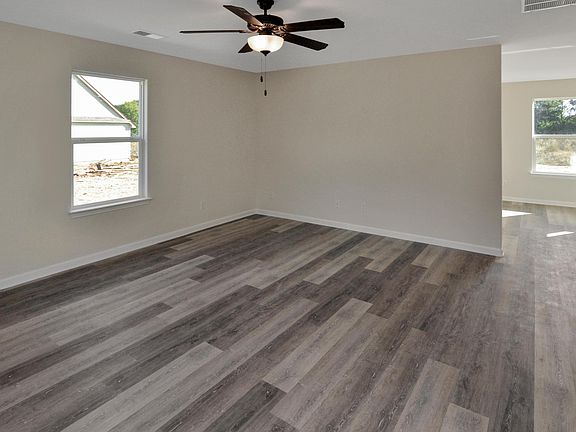 This beautiful New Construction is Move-In Ready! The exterior features a low maintenance vinyl siding and a large open backyard. Step inside and find luxury vinyl plank floors that lead throughout this home. The family-sized great room leads into the spacious kitchen. It is highlighted by granite countertops, stainless steel appliances, white cabinets, & an island w/bar seating plus adjoining dining area w/double doors to laundry closet. Down the hall you'll find 4 bedrooms and 2 full baths. The primary suite includes a walk-in closet and a private full bath w/built-in storage. Both baths include bronze fixtures, tile floor, & tub/shower combos w/tile surround. Don't miss out on this brand new home!