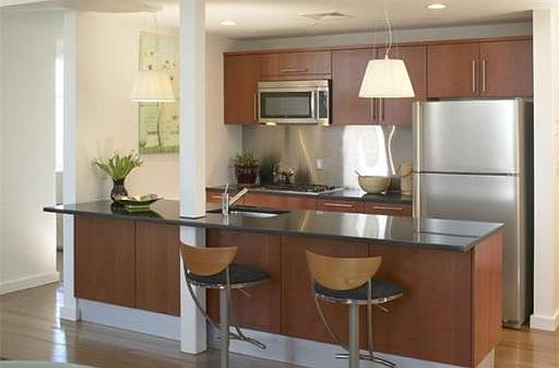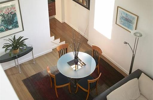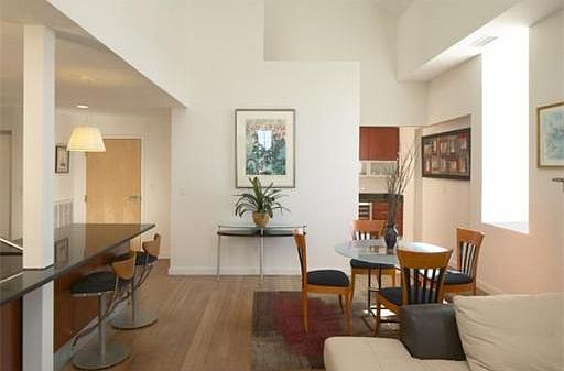 Renovated loft-style two-bedroom, two-bath penthouse residence in brick elevator building in heart of Union Square. Dramatic double-height ceiling and eight-foot tall windows anchor inviting open floor plan on the main living level. Contemporary kitchen features cherry cabinets, absolute black honed granite counters and Philippe Starck pendant lights over bar countertop. Bonus room with custom cabinetry and Marvel beverage cooler, ideal for entertaining. In addition to the full bathroom and bedroom on the main living level, there is a spacious master bedroom suite on the mezzanine level with three closets, including expansive walk-in with laundry machines. Ship's ladder leads to incredible roof deck with impressive Boston skyline views. Extras here include mahogany flooring, central AC and off-street parking for one car close to building entrance.