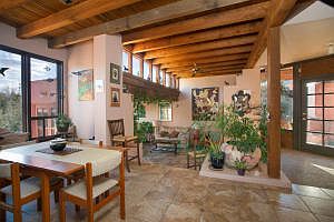 Secluded in the privacy of mature vegetation on .46 acres, this architect's home is oriented to maximize the panoramas of the red rocks and the benefits of winter sun. Located close to Oak Creek swimming holes, there is a density of riparian vegetation that enlivens the views with seasonal color, and frames close-by soaring Blue Heron. Filled with light, the multiple floor and ceiling levels animate the open living, dining, kitchen great room. The roofs are constructed with exposed beams and rafters of select structural Douglas Fir, supporting premium grade cedar decking inspired by the ceilings of the world renown Tlaquepaque in Sedona. The architect/owner/builder integrated passive cooling, as well as, passive solar heating into the orientation and design of this home. A solar chimney Brokered And Advertised By: RE/MAX Sedona Listing Agent: A. Lee Congdon