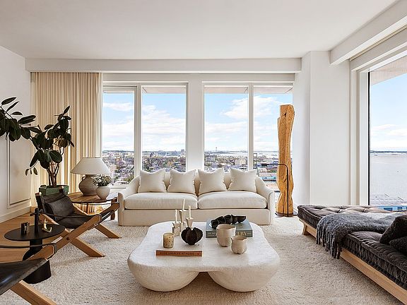 Inside this 4,496-square-foot showplace, ceilings rise up to 9.25 feet high above oak flooring, designer lighting and walls of windows facing north, west and south. A private two-elevator entrance featuring custom millwork and a walk-in coat closet makes a dramatic first impression. Ahead, the open layout welcomes lavish entertaining and comfortable relaxation alongside postcard views of Governors Island, Lower Manhattan and the Statue of Liberty. Plan your next dinner party in the dining area, where a custom-built bar boasts a Thermador wine refrigerator. In the magazine-worthy chef's kitchen - a Brooklyn Home Company hallmark - custom cabinetry and slabs of marble enclose upscale appliances, including a custom Lacanche Savigny Classique gas range with a vented hood, a Sub-Zero beverage refrigerator, plus a refrigerator, dishwasher and a combi-microwave oven with a warming drawer, all by Gaggenau. An oversized pantry and center island/breakfast bar complete the space. The dramatic library beckons with custom millwork and built-ins, while a Tadelakt plaster powder room adds convenience.