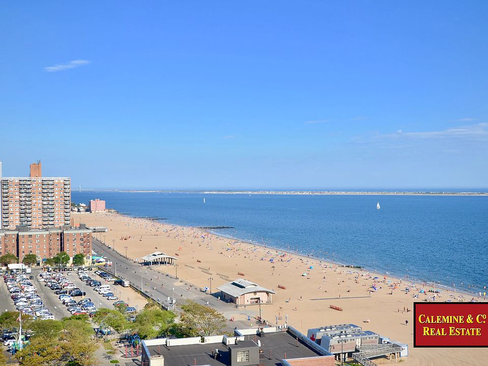 Spectacular unobstructed ocean views from this fully renovated 1-bedroom unit perched high above The Boardwalk on the top floor of one of the most luxurious buildings in Brighton Beach. Direct ocean views from both the living room and bedroom. As one of the largest 1-bedroom lines in the building, there is plenty of storage and closet space. This modern building sits right on the beach and features a large, private outdoor swimming pool and shower for freshening up after a day on the beach. Inside is a fully updated lobby, gym, sauna, parking garage, package room, bicycle storage and evening doorman. Both elevators have also been recently updated. Closed-circuit video security throughout the property as well. Subletting allowed on day one. Maintenance includes gas, electric and property taxes. There's also plenty of transportation options with the B/Q train only 1 block away and the Belt Parkway and Ocean Parkway within a few blocks. This is a great apartment in an outstanding building with an AMAZING location. Listed exclusively by Calemine & Co. Real Estate.