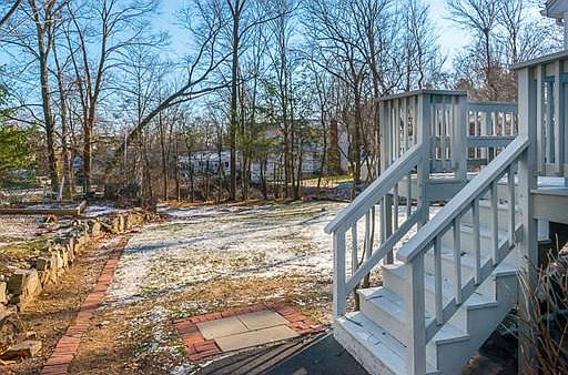 Open house Monday MLK Day 11:30-1pm! Garrison Colonial in picturesque family neighborhood in Westwood...Minutes to highway, shopping at Legacy Place and the commuter train stop. Walk to nearby main street shops and playground. Desirable Westwood schools, Hanlon elementary. Spacious family room with cozy fireplace/tv area open to vaulted ceiling with skylight for playroom or dining area. Tranquil 3 season porch. Full finished basement with recreation room, fireplace, bar area, and remodeled 3/4 bath. Walk out slider to serene back yard space with blue stone patio overlooking small brook with foot bridge. Half bath on 1st floor, full bath upstairs. Four bedrooms with generous size closes. Fourth bed is smaller in size and may function as a nursery or child's bedroom, act as an office, hobby space, or even more closet space. Roof is approximately 3 years young. Updated 200 amp electric service. Windows replaced within the past 2 years. Forced hot air heat with C/A in the summer months.