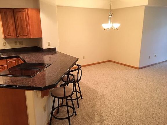 55+ community, open floor plan, on first level, private covered patio, secure building with elevator to underground heated parking. Granite countertops, travertine tile, window coverings, in-floor heat, kitchen and laundry appliances included. Contact property owner for rental amount. Tenant pays utilities for electric and gas.