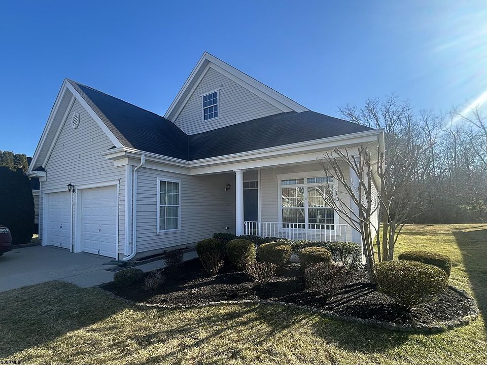 Welcome to Village Grande at Little Mill, an exceptional active adult community in Egg Harbor Township! This charming ranch-style home is situated on a premium lot with a serene wooded backyard and a welcoming covered front porch, perfect for relaxing with a morning coffee. Once inside, you walk into the ceramic tiled foyer that leads to the living room with 9-ft ceilings and a cozy granite faced gas fireplace. The brightly lit kitchen leads to the dining room, then opens to a Florida Room with sliding glass doors to a paver patio — complete with a motorized, automatic wind sensor retractable awning. The large primary suite boasts a walk-in closet, tray ceilings and an expansive primary bathroom. Additional highlights include a laundry room with a washer, dryer, and utility sink, plus a two-car garage with ample storage shelving. This home is also equipped with a newer water heater and an HVAC system with an air purifier for enhanced comfort and air quality. This community comes with an HOA fee that covers landscaping, snow removal, and access to top-tier amenities, including a clubhouse, indoor & outdoor pools, tennis courts, a fitness center, and more. With your personal touch, this home can become your perfect retirement retreat. Don’t miss this opportunity to live in a vibrant, active adult community — schedule your showing today!