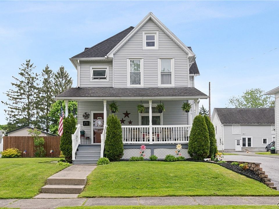 Welcome to your new home sweet home in the heart of Auburn! This 3 bed, 2 bath American Foursquare style home boasts the perfect blend of comfort, convenience, and charm. From the inviting front porch, enter inside to the main foyer featuring decorative woodwork, tall ceilings, a stunning wood staircase, and large windows—offering an abundance of natural light leading you to the adjacent living room, dining area, and office space. The kitchen is equipped with ample cabinet space, stainless steel appliances, and a breakfast bar where you can enjoy a morning cup of coffee or chatting with guests while preparing a meal. An addition off the back provides a versatile bonus space as well as the first floor bathroom/laundry room combination. Head upstairs through the secondary staircase to find three generously sized bedrooms, the second full bathroom, and access to the walk-up attic. Out back is the fully fenced-in backyard oasis, featuring a spacious lawn for gardening or yard games, a patio for holiday barbecues, pool for cooling off from a day in the sun, and a large detached garage offering storage and parking options to suit your needs. OFFER DEADLINE set for Friday 5/17 at 9pm.