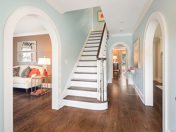 Originally built in 1929, this distinguished residence has been meticulously expanded and renovated to showcase time-honored design reimagined for contemporary living. A stone facade, crisp white exterior, and welcoming front porch set an elegant tone upon arrival. Inside, the home achieves a graceful balance between formal and informal living. Sunlit rooms framed by generous windows create an inviting warmth, while preserved details-including curved archways-honor the home's history. The thoughtful renovation enhanced both scale and flow, introducing expansive gathering areas, a chef's kitchen, and versatile spaces equally suited for entertaining or everyday living. Upstairs, the primary suite provides a serene retreat with a wood-burning fireplace and French doors opening to a private deck. Six additional bedrooms are generously proportioned and thoughtfully arranged to provide comfort and privacy. A large recreation room with custom built-ins adds flexibility, accommodating everything from work to play. Outdoors, the beautifully landscaped property features a bluestone patio with a built-in grill-creating an exceptional setting for al fresco dining, gatherings, and quiet enjoyment.