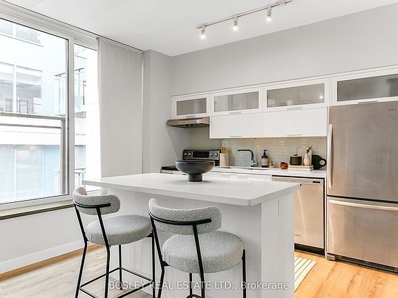 The Sylvia is not your average condo - and that's exactly the point. This boutique residential loft building in the heart of the Fashion District delivers character, design, city energy, and an unmistakably cool vibe. In this pocket of Toronto, lifestyle and unbeatable convenience are part of everyday life, with Waterworks Food Hall, the Ace Hotel, and St. Andrews Park just outside your door. Inside, this 1-bed, 1-bath unit offers a thoughtful layout with a modern kitchen and eat-in centre island, FULL-sized appliances, wide plank floors, a spacious bathroom with an oversized vanity, large windows, and plenty of storage throughout. Residents also enjoy access to a fitness centre, party and meeting rooms, a landscaped courtyard with BBQs, and visitor parking. With a 100 walk score, 100 transit score, and 99 bike score, getting around is effortless. Whether you're a first-time buyer, a young professional, or a savvy investor, this one delivers the perfect mix of location, layout, and style.