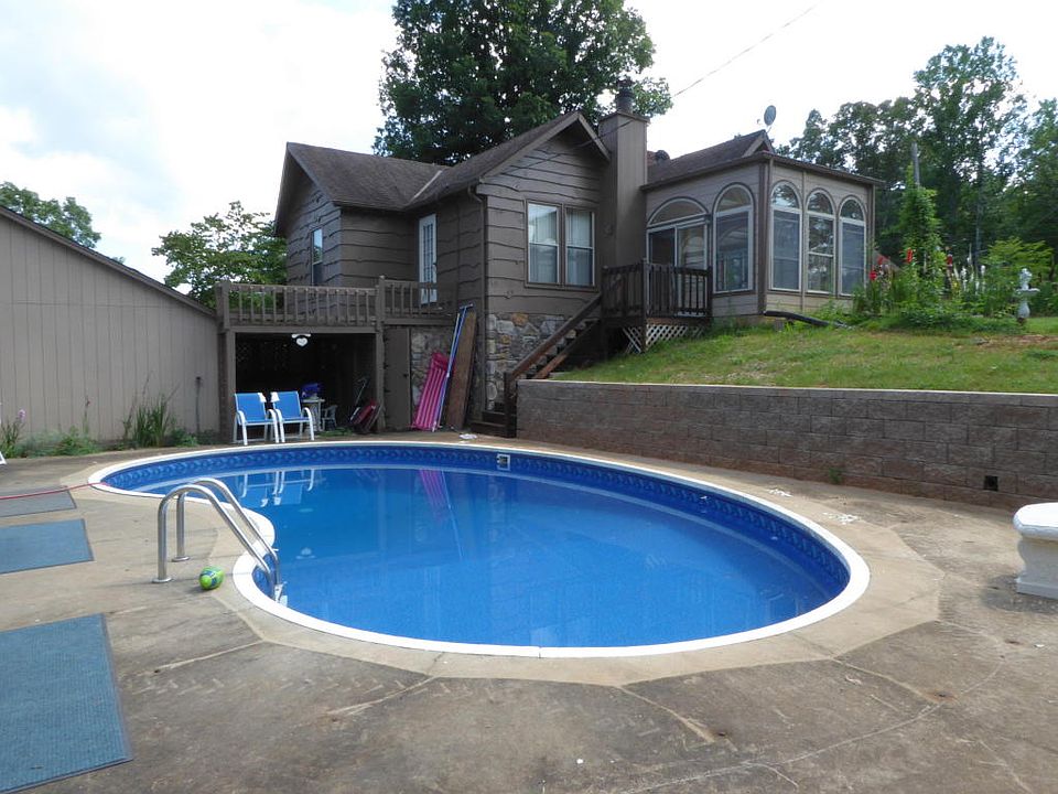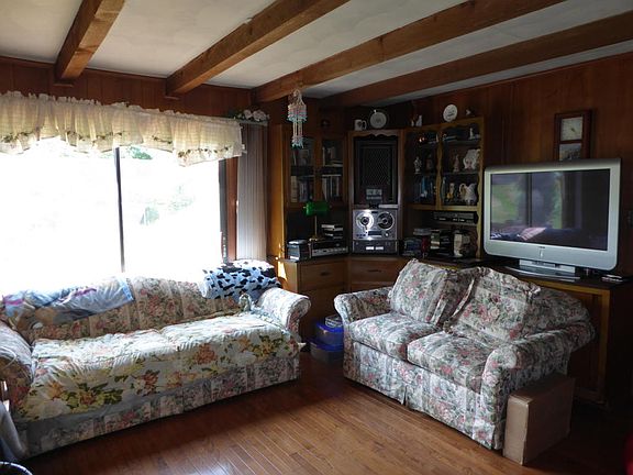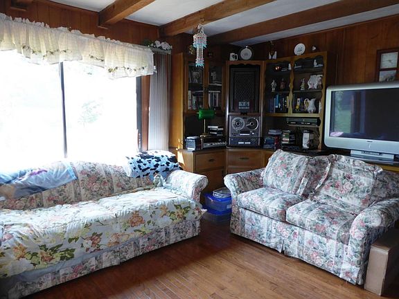 One level living. Ranch style home on 32.7 acres. Beautiful brick fireplace in family room w/gas logs and propane tank that is provided. Built-in cabinets, beamed ceiling & hardwood floors in family room, kitchen & dining room and entire home. Split bedroom floor plan. Master bedroom includes 2 walk-in closets, handicap accessible bathroom w/walk-in shower & double bowl vanity. Spacious Florida Sunroom w/ceramic tile floor & hot tub. Basement includes a family room w/wood stove that will heat entire home through the existing ductwork system. 2 car detached garage. Remolded mobile home (10x40) on property. A very nice securely located in-ground Pool w/new pool liner and cover. Fenced yard, paved driveway. Suitable for horses, Canton creek on property. Plenty of storage which includes a storage building with 2 enclosed 12x24 parcels and a open covered 24x24 area