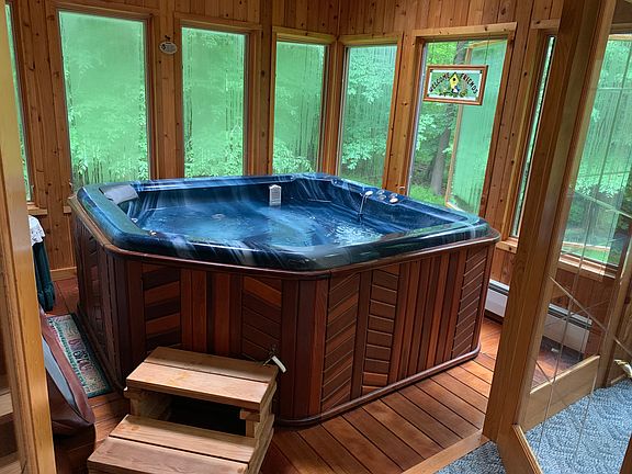 Gorgeous 4 Bed 3 Bath home is tucked in the woods for Living, Entertaining, and Full-time Relaxing. This home offers so many features such as a Hot Tub Room, Family Room with Coal Stove, Great Room, 2+ Car Heated Garage, Granite Kitchen Counters with Wine Fridge and Black Glass Appliances, Double Wall Oven, Wood Burning Fireplace in the Living Room, House Generator, Stainless Steel Gutter Guards, LED lights throughout, Central Vac covering all floor areas even the Garage, a Kick Sweep in the Foyer, Expansive Patio, and a 14X17 Shed with an overhead garage door at the front, and a door to take you out back.