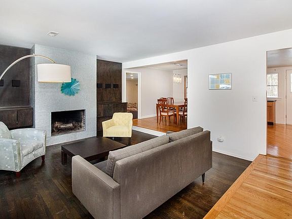 This is the one you've been waiting for... Sought after quiet cul-de-sac neighborhood. Wonderful open floor plan features sunken living room with glass tile wood burning fireplace and built-in cabinets, formal dining room with chandelier and a delightfully remodeled kitchen with granite + stainless. Cozy den with slider leads to expanded deck perfect for cookouts or just relaxing with a beverage. Master bedroom with tile half bath.Fabulous lower level family room with new carpeting, 1/2 bath and separate laundry room. Hardwood floors, central A/C, 2009 roof, basement utility/storage area, garage with opener. Nice, private backyard bordered with trees. Excellent location near downtown, shopping, restaurants and commuter rail.