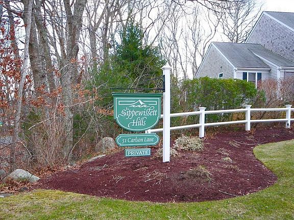 Fabulous end unit condo with two bedrooms in Sippewisset Hills right on the bike path and very close to beautiful Woodneck beach. One floor living with additional living area in the partially finished basement with walkout slider to the outdoors. Enter into the open floor plan with bright kitchen, dining room and living room with corner fireplace accenting the vaulted ceilings. The large slider leads to the oversized deck with views of the bike path below. Tastefully decorated and in excellent condition this unit has 2 bedrooms and 2 full baths on the first floor level and additional living area in the level below with several spaces to expand and entertain. Enjoy the comfort of this space with gas heat and central ac, plenty of living space and storage along with the professionally landscaped grounds, making this a unit not to be missed!